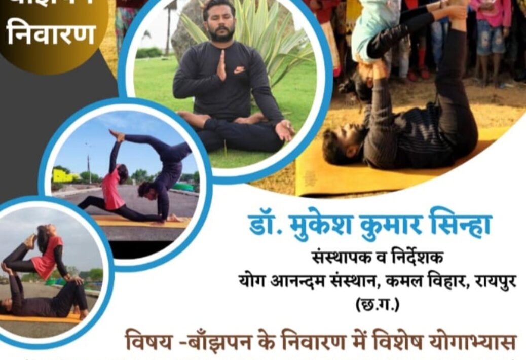 छत्तीसगढ़ योग शिक्षक संघ के तत्वावधान में आयोजित 23वें सत्र के ऑनलाइन संघ योगाभ्यास कार्यक्रम में मुख्य वक्ता के रूप में *योग गुरु डॉ. मुकेश कुमार सिन्हा, संस्थापक व निर्देशक, योग आनन्दम संस्थान, कमल विहार, रायपुर (छ.ग.)* ने विषय बाँझपन रोग में विशेष योगाभ्यास पर सारगर्भित सत्र लिया! इस सत्र पर संघ अध्यक्ष अनिल चन्द्राकर जी ने हार्दिक आभार व्यक्त किया ! महासचिव खोमेश साहू जी (यू.जी.सी.-एस.आर.एफ) ने मुख्य वक्ता का पुष्पगुच्छरूपी शब्दों से स्वागत कर भूमिका प्रस्तुत करते हुए कहा कि अधिक उम्र में बेबी प्लानिंग करने, असंयमित जीवनशैली जीने के कारण आज बांझपन की समस्याएं समाज मे सामान्य बात हो गई है, जिसके कारण महिलाओं को अनेक प्रकार की प्रताड़ना का दंश भी झेलना पड़ता है, ऐसे समय में योग को अपनाने की महती आवश्यकता है! नितेश पटेल जी ने श्रोताओं का स्वागत कर कार्यक्रम का संचालन किया! मोनिका सिन्हा जी ने मुख्य वक्ता का जीवन परिचय प्रस्तुत करते हुए कहा कि मुकेश सर रायपुर में कई महिलाओं को योगाभ्यास कराकर इस समस्या से निजात दिला चुके है!