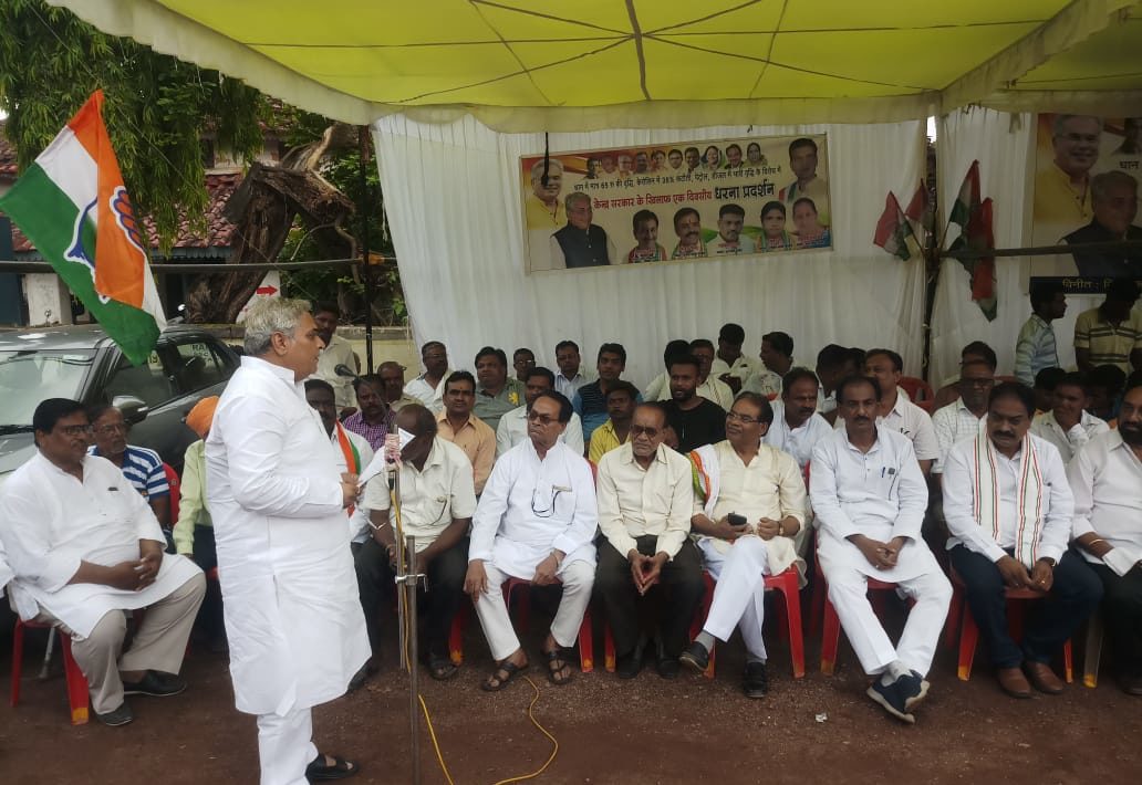कैरोसीन कोटे में कटौती, केन्द्रीय बजट में पेट्रोल-डीजल के दाम बढ़ाने, धान के समर्थन मूल्य में मात्र 37 प्रतिशत की वृद्धि, दालभात केन्द्रों के चांवल कटौती और बढ़ती महंगाई के खिलाफ राज्यव्यापी धरना