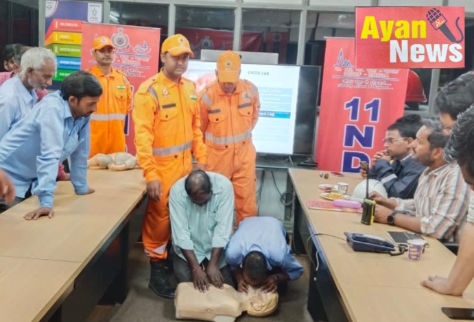 *देवरिया/बैतालपुर* . हिंदुस्तान पेट्रोलियम कॉर्पोरेशन लिमिटेड बैतालपुर देवरिया में बृहस्पतिवार को एनडीआरएफ यानी नेशनल डिजास्टर रिस्पांस फोर्स के *उपमहानिरीक्षक श्री* *मनोज कुमार शर्मा* के कुशल दिशा निर्देशन मेंरीजनल रिस्पांस सेंटर ( आरआरसी)गोरखपुर के *उप कमांडेंट* *संतोष कुमार* के नेतृत्व में कैपेसिटी बिल्डिंग प्रोग्राम का आयोजन किया गया टीम का नेतृत्व कर रहे उपनिरीक्षक जयप्रकाश कुमार ने बताया कि आए दिन होने वाली कैमिकल और आग जैसी इमरजेंसी को काबू पाने के लिए और भूस्खलन, भूकंप, बाढ़ , सड़क सुरक्षा जैसी आपदाओं के दौरान जीवन सुरक्षा के उपाय तथा साथ ही ध्वस्त ढांचा में फंसे हुए इमरजेंसी मूव टेक्निक से किस तरह बाहर निकाला जाता है के प्रदर्शन दिखाएं आपदा के दौरान घायल व्यक्तियों को अस्पताल से पूर्व चिकित्सा के बारे में बताया गया और साथ ही इन आपदाओं में प्रयोग करने वाली रेस्क्यू तकनीकी में फंसे हुए लोगों को निकालने तथा उनकी प्राथमिक उपचार देने के बारे में बताया गया। इसके अतिरिक्त कार्यक्रम में ड्रेसिंग बैंडेज खून के बहाव को रोकना तथा फैक्चर को सुरक्षित करने तथा कृत्रिम सास(सीपीआर) का प्रयोगात्मक प्रशिक्षण किया इस कार्यक्रम का मुख्य उद्देश आपदा के प्रति जागुरूकता को बढ़ाना एवं जलवायु में हो रहे परिवर्तन पर चर्चा करना था। जिससे किसी भी आपदा के समय अमूल्य मानव के जीवन को बचाया जा सके इस अवसर पर कैपेसिटी बिल्डिंग प्रोग्राम के जरिए एनडीआरफ गोरखपुर के उपनिरीक्षक जयप्रकाश कुमार एवं अन्य जवान मौजूद रहे। हिंदुस्तान पैट्रोलियम कापरेशन लिमिटेड के असिस्टेंट मैनेजर ललित गोयल एवं सेफ्टी ऑफिसर और अन्य कर्मचारी भी मौजूद रहे ।