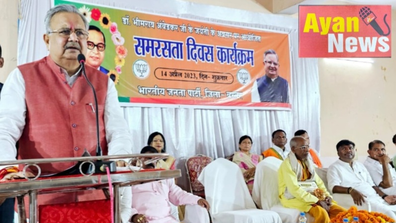 बाबा साहेब की जयंती अवसर पर आयोजित समरसता दिवस कार्यक्रम को संबोधित करते हुये पूर्व मुख्यमंत्री डा.रमन सिंह ने कहा कि बाबा साहेब अंबेडकर के अमर योगदान को देश हमेशा याद रखेगा। उन्होंने संविधान की रचना की, जिसको आधार मान कर भारत निरंतर आगे बढ़ रहा है। डा.अंबेडकर ने वंचित वर्ग को न्याय दिलाने व उनके उत्थान के लिये जीवन भर तपस्या की,अपना सर्वस्व न्योछावर कर दिया, जो सदैव स्मरणीय रहेगा। डा.रमन ने कहा कि प्रधानमंत्री नरेंद्र मोदी बाबा साहेब के बताये मार्ग का अनुसरण कर सबका साथ,सबका विकास, सबका विश्वास, सबका प्रयास मंत्र के पर निरंतर कार्य कर रहे हैं। डा.अंबेडकर के आदर्श व सिद्धांतों को मूर्त रुप देना ही सच्ची श्रद्धांजलि है। कार्यक्रम में समाज सेवा के उत्कृष्ट कार्य के लिये रामप्रसाद कुमार, सोनाराम बघेल,बोंगूराम नाग,बंशीलाल सहारे,हरिसिंह सुनहरे,रघुनाथ सहारे,श्रीमती कमला बाई बघेलबघेल व छोटे लाल नाग का शाल, श्रीफल, स्मृति चिन्ह भेंट कर पूर्व मुख्यमंत्री डा. रमन सिंह ने सम्मान किया। कार्यक्रम का संचालन रामाश्रय सिंह व आभार प्रदर्शन डा. सुभाऊ कश्यप ने किया।
