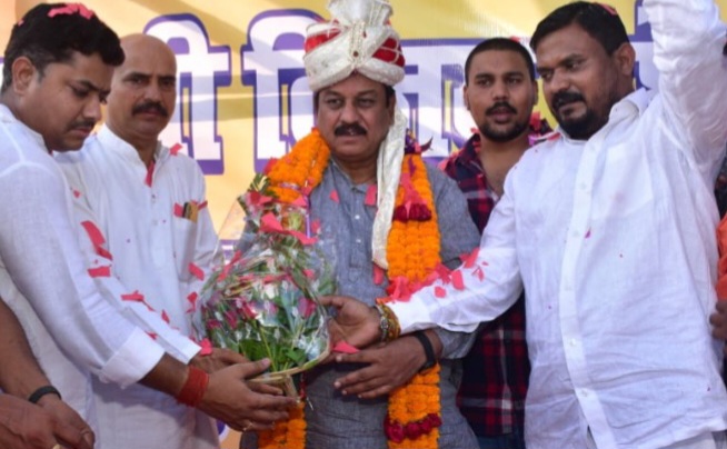 सांसद विजय बघेल के आगमन पर महाकाल सेना व भाजपाईओ के द्वारा हुआ भव्य स्वागत