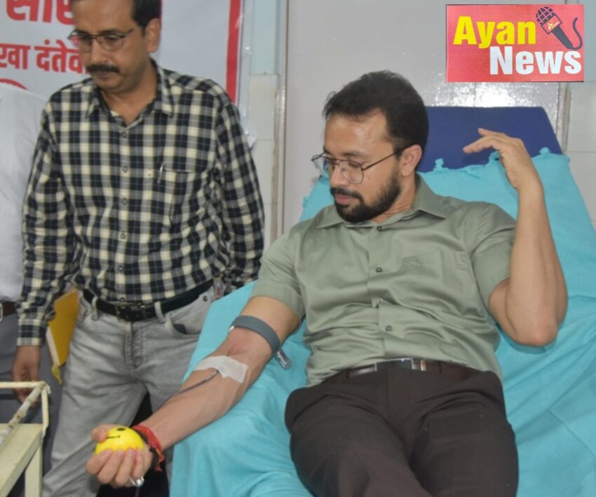 *विश्व रक्तदान दिवस**जिला अस्पताल कलेक्टर श्री नंदनवार सहित अधिकारियों-कर्मचारियों ने किया रक्तदान**रक्तदान कर जरूरतमंद मरीजों की मदद करें-कलेक्टर श्री नंदनवार* दंतेवाड़ा, 14 जून 2023। सभी को विदित है कि 14 जून को विश्व रक्तदान दिवस के रूप में मनाया जाता है। इस अवसर पर आज जिला अस्पताल में मेगा ब्लड डोनेशन कैम्प का शुभारंभ किया गया। मौके पर कलेक्टर श्री विनीत नंदनवार ने कैम्प का शुभारंभ करते हुए कहा कि विश्व रक्तदान दिवस पर आयोजित इस कैम्प का उद्देश्य जरूरतमंद लोगों को रक्तदान कर उनका जीवन बचाना है। अप्रत्याशित दुर्घटनाओं सहित खून की कमी से होने वाले कई लोगों में जीवनदायी खून की आवश्यकता होती है। इसके मद्देनजर जरूरतमंद लोगों को रक्तदान कर उन्हें गंभीर स्थिति में पहुंचने से बचाया जा सकता है। इस दिशा में हम सभी को रक्तदान कर जरूरतमंद मरीजों की सहायता कर मानव सेवा के इस कार्य में सहभागिता निभाने आगे आना होगा। उल्लेखनीय है कि इस मेगा ब्लड कैंप ‘‘विश्व रक्तदान दिवस‘‘ मौके पर अन्य अधिकारी-कर्मचारियों, नागरिकों के अलावा स्वयं कलेक्टर श्री विनीत नंदनवार ने रक्तदान किया और जन जागरूकता के तहत हस्ताक्षर कर सेल्फी भी खिंचवाई।विश्व रक्तदान दिवस के मौके पर डॉ एस.मंडल ने कहा कि हर साल रक्तदान पर एक ग्लोबल थीम तय की जाती है। अतः इस साल की थीम अंतर्गत रक्त दें, प्लाज्मा दें, जीवन साझा करें और बार-बार करें‘‘ थीम निर्धारित की गयी है। उन्होंने आगे कहा कि रक्तदान देने के अनेक फायदे हैं, और रक्तदान करने से कोई शरीर को कोई नुकसान नहीं होता है। ज्ञातव्य है कि प्रातः 10 बजे कैंप की शुरुआत की गयी। जिसमें सीआरपीएफ जवान, पुलिस अधिकारी, एनसीसी कैडट, स्वयंसेवी संस्था सहित अन्य नागरिकों ने भी रक्तदान किया। इस अवसर पर डॉ देश दीपक, जिला चिकित्सालय की स्टाफ, सीआरपीएफ अन्य उपस्थित थे।