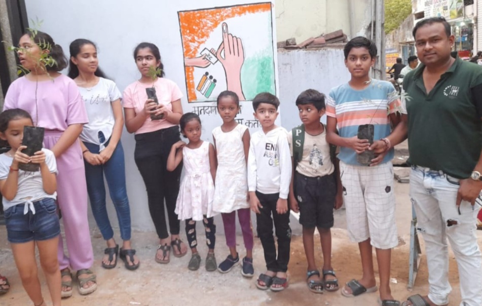 ग्रीन आर्मी संस्था के सदस्यों श्रमिकों को पौधा भेट कर मतदान करने के लिए प्रेरित किया ।