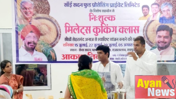 साईं सदन किशन मोहन जी के द्वारा पंडित रविशंकर शुक्ला वार्ड पार्षद एमआईसी मेंबर आकाश तिवारी के द्वारा निशुल्क मिलेट्स कुकिंग क्लासेस की शुरुआत की गई जिसने वार्ड वासी एवं आसपास के क्षेत्रों से महिलाओं ने बढ़-चढ़कर इस कुकिंग क्लास में हिस्सा लिया तथा महिलाओं में काफी उत्साह है की स्थानीय पार्षद द्वारा मिलिट्री कुकिंग क्लासेस लगाई जा रही हैं पार्षद ने बताया है यह 1 महीने मी 5 क्लासेस हर शनिवार सेवासदन सामुदायिक भवन पर रखा जाएगा इसकी शुरुआत आज से की गई जिसमें मिलेट्स द्वारा पोहा भजिया और हेल्दी जूस लस्सी बनाना आज की क्लास में सिखाया गया जिसमें भाग लेने वाली सभी महिलाओं ने इसके टेस्ट भी किया और सराहना भी बच्चों को टिफिन में हेल्दी फूड दिया जाए इस पर विशेष ध्यान दिया गया इसमें लगभग 50 महिलाओं ने प्रथम दिन पार्टिसिपेट किया हमारे शरीर में कोदो कुटकी से कितना फायदा मिलेगा यह भी बताया गया