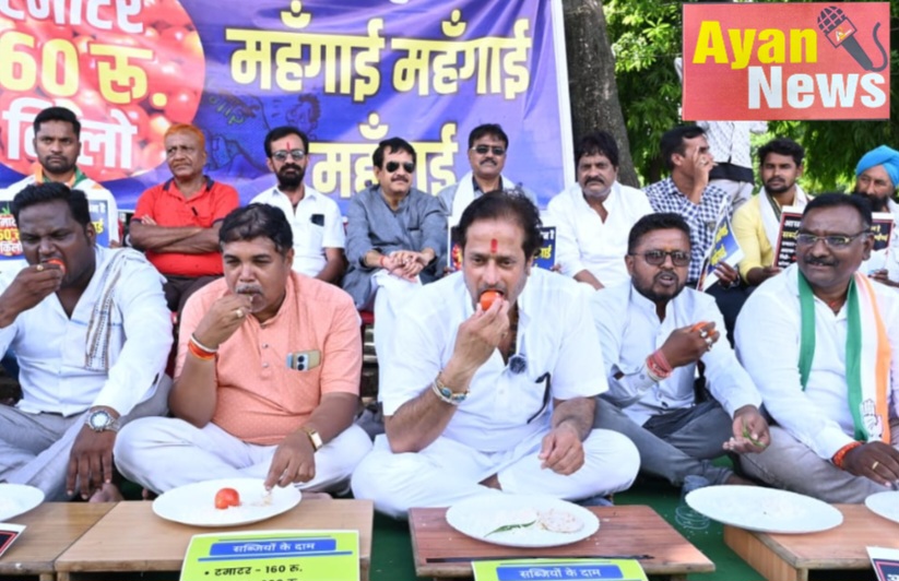 इस दौरान एआईसीसी सचिव व विधायक विकास उपाध्याय ने केंद्र में सत्तारूढ़ भाजपा के खिलाफ जोरदार प्रहार करते हुऐ कहा कि आज टमाटर 100रु से 150रु किलो, अदरक 250रु, धनिया 200रु किलो, मिर्ची 100रु किलो, शिमला मिर्च 120रु किलो, लहसुन 150रु किलो, भिंडी 80रु, करेला 80रु, परवर 80रु, गाजर 80रु है इस बढ़ी हुई महँगाई में आम जनता का बुरा हाल है ग़रीब लोग तो भूखमरी में जीने को मजबूर हैं लोगो के पास खाने को चावल तो है, पर सब्ज़ी और दाल के लिये पैसा नही है, और तो और टमाटर जिसका उपयोग हमारे देश की महिलाए हर सब्ज़ी बनाते वक्त करती है उस टमाटर का दाम तो इतना अधिक है की लोग उसे सिर्फ़ देख कर ही महसूस कर रहे हैं महंगा होने के कारण टमाटर को खरीद कर खा नही पा रहे हैं। आज घरेलू गैस के दामो में वृद्धि के चलते गैस सिलेंडर होने के बावजूद महिलाए चूल्हा जलाने पर मजबूर हैं। आज दैनिक जीवन की वस्तुएं यूपीए के ज़माने से तिगुने चौगुने दामो पर मिल रही है, कच्चे तेल का दाम अंतर्राष्ट्रीय बाजार में कम फिर भी भारत मे पेट्रोल डीजल का दाम बढ़ा हुआ है। आपको याद होगा कि 400रु सिलेंडर मिलने और सब्जियों के 1 से 2 रु के दामो में वृद्धि होने पर सिलेंडर सर पर उठा कर घूमने वाले भाजपा के लोग आज इस महंगाई पर आँख मूंदे पड़े है, चंद उद्योगपतियों को फायदा पहुँचाने के लिये आज जनता के पेट पर प्रहार ये भाजपा में ही मुमकिन है, खाद्य वस्तुओ की जमाखोरी और कालाबाजारी की जा रही है, आज इस प्रदर्शन के माध्यम हमने आमजन की वेदना को प्रकट कर सच्चाई बयान कर रहे हैं, जिस प्रकार 15-15 लाख को सभी ने बैंक एकाउंट में महसूस किया उसी प्रकार से टमाटर धनिया मिर्ची को हम महसूस कर रहे हैं क्योंकि हमारे पास इसे लेने की ताक़त नही है।