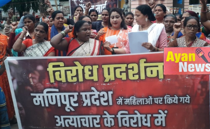 बचेली मे मणिपुर राज्य में महिलाओं के साथ हुऐ अत्याचार के विरोध में छत्तीसगढ़ महिला फेडरेशन ने किया विरोध प्रदर्शन