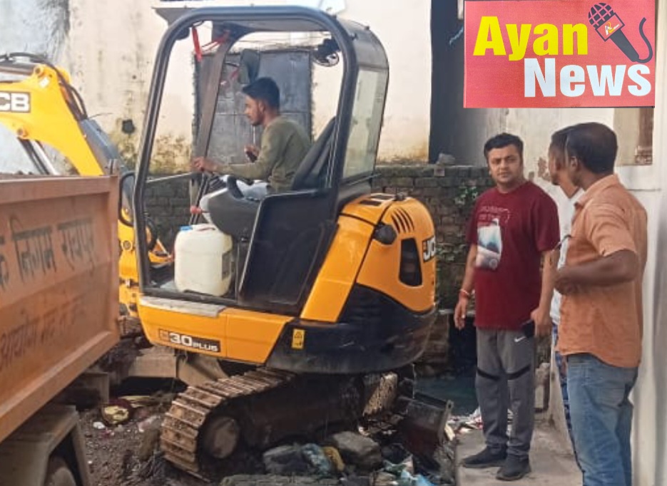 *पार्षद की नाराजगी के बाद नाला सफाई के लिए पहुंची जेसीबी*