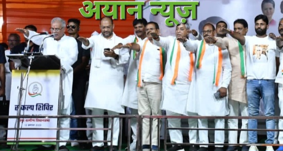 *ग्रामीण विधानसभा में संकल्प शिविर के साथ चुनावी शंखनाद *2023में एक बार फिर कांग्रेस की सरकार बनाने कार्यकर्ताओं को कराया गया संकल्पित* रायपुर 11 अगस्त 2023। कांग्रेस का बूथ लेवल के कार्यकर्ताओं का सम्मेलन संकल्प शिविर राजधानी रायपुर के ग्रामीण विधानसभा के बिरगांव स्थित गुरुकुल स्कूल में रखा गया था संकल्प शिविर शुरू होने से पहले मुख्यमंत्री भूपेश बघेल बंजारी माता के मंदिर पहुंचे जहां उन्होंने माथा टेककर माता से आशीर्वाद लिया, तत्पश्चात संकल्प शिविर की शुरुआत हुई जिसमें प्रमुख रूप से प्रभारी सचिव डॉ. सप्तगिरि उल्का,प्रदेश अध्यक्ष दीपक बैज मौजूद थे। यह संकल्प शिविर प्रदेश के सभी 90 विधानसभा क्षेत्रों में होगा। संभागीय सम्मेलन विधानसभा स्तर पर पदाधिकारियों के प्रशिक्षण के बाद कांग्रेस अब बूथ लेवल के कार्यकर्ताओं का प्रशिक्षण कर रही है। संकल्प शिविर में बूथ प्रबंधन, भूपेश सरकार की उपलब्धियां, भाजपा की जनविरोधी नीतियों पर भी नेताओं ने जानकारी दी। वही संकल्प शिविर के साथ चुनावी शंखनाद भी हो गया।