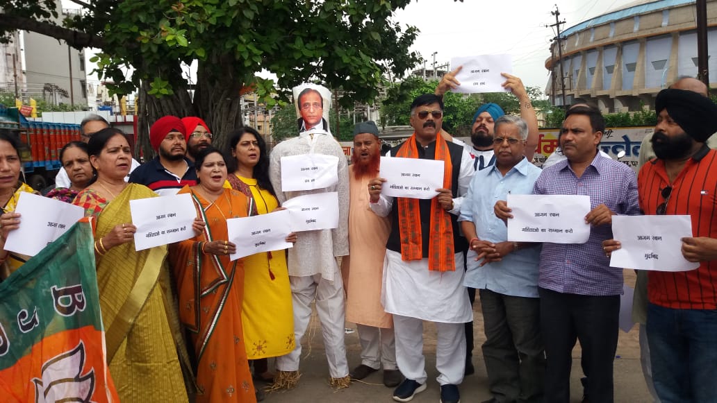 भाजपा जिला अल्पसंख्यक मोर्चा रायपुर ने आज़म खान का पुतला फूंका