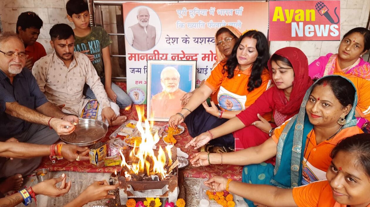 एक समाज श्रेष्ठ समाज संस्था ने प्रधानमंत्री नरेन्द्र मोदी के जन्मदिन के अवसर पर प्रधानमंत्री नरेन्द्र मोदी के सकुशल लंबी आयु के लिए हवन यज्ञ कर मिष्ठान वितरण किया