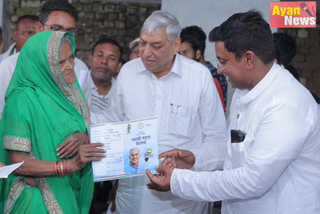 *ग्रामीण विधायक सत्यनारायण शर्मा एवं पंकज शर्मा के हाथों वितरण*रायपुर—रायपुर ग्रामीण विधानसभा के अंतर्गत आज भनपुरी एवं न्यु गोदवारा क्षेत्र मे लोगों की बहू उपेक्षित मांग पूरी हो गई है पात्र हितग्राहियों को ग्रामीण विधायक सत्यनारायण शर्मा एवं जिला सहकारी बैंक के अध्यक्ष पंकज शर्मा के द्वारा पट्टा का वितरण किया गया न्यु गोदवारा में जहां ग्रामीण विधायक सत्यनारायण शर्मा ने पट्टा का वितरण किया वहीं भनपुरी में जिला सहकारी बैंक के अध्यक्ष पंकज शर्मा पट्टा वितरण करने पहुंचे थे आपको बता दे की राज्य की महत्वपूर्ण योजनाओं में से एक पट्टा वितरण कार्यक्रम भी है जिसके अंतर्गत लोगों को उनका अधिकार दिया जा रहा है राज्य सरकार के इस महत्वपूर्ण कदम से आर्थिक रूप से कमजोर लोगों को मालिकाना हक मिल पा रहा है।जिला सहकारी बैंक के अध्यक्ष पंकज शर्मा ने कहा कि यशस्वी मुख्यमंत्री भूपेश बघेल जी की सोच एवं जनहितैषी योजनाओं के कारण आज राजीव गांधी आश्रय योजना के फलस्वरूप गरीब जनता को उनका स्थायी पट्टा का वितरण हो पाया है। सरकार के द्वारा हर क्षेत्र चाहे शिक्षा हो, रोजगार हो, स्वास्थ्य का क्षेत्र हो, कृषि क्षेत्र हो, नवनिर्माण के कार्य हो लगातार नये-नये कार्य किये जा रहे हैं। आम आदमी के जीवन में उनके रहने के लिए घर का महत्व काफी ज्यादा है, इस आवश्यकता को देखते हुए छत्तीसगढ़ सरकार द्वारा शहरी क्षेत्र में राजीव गांधी आश्रय योजना के तहत् पट्टा वितरण तथा ग्रामीण क्षेत्रों में ग्रामीण आवास न्याय योजना के तहत् पक्के आवास के लिए जरूरतमंद परिवारों को अनुदान प्रदान किया जा रहा है।