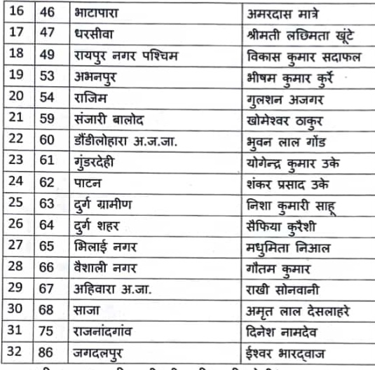 जनता कांग्रेस ने अनुसूचित जाति/महिला वर्ग को पहली प्राथमिकता के साथ प्रत्याशी सूची जारी की।