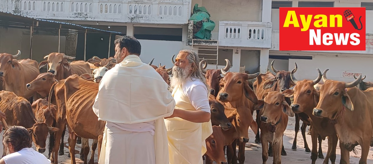 *गौ माताओं की की गई पूजा महन्त जी महाराज के द्वारा*