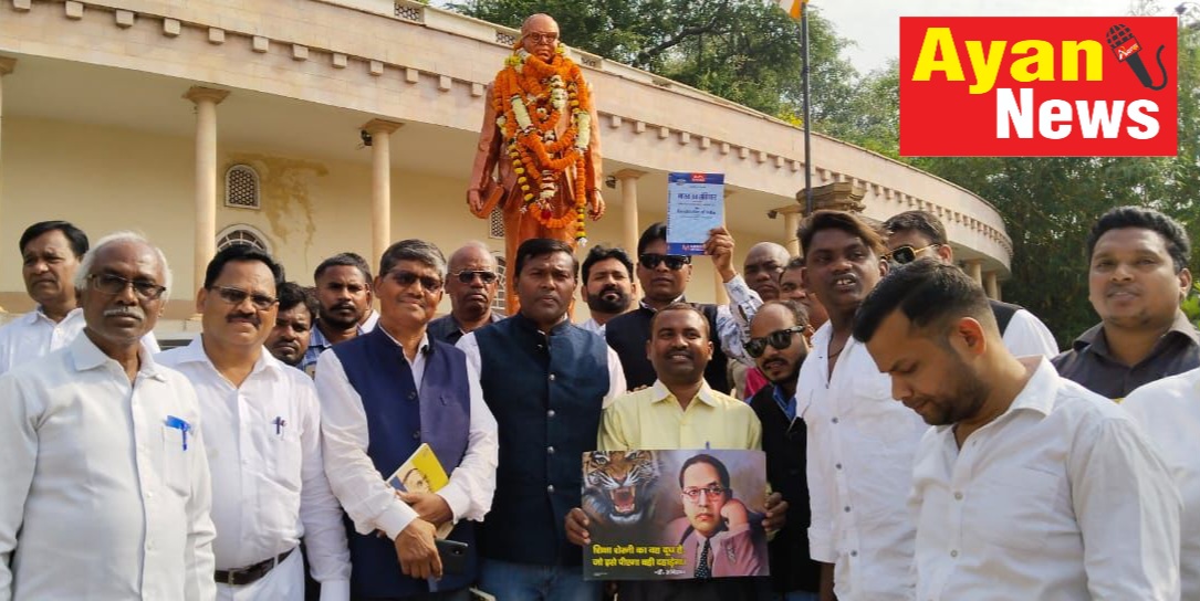 रायपुर, छत्तीसगढ़, दिनांक 26 नवंबर 2023। भारतीय संविधान दिवस के अवसर पर आज डॉ बी आर अंबेडकर अधिकार मंच के द्वारा घड़ी चौक स्थित प्रतिमा के समक्ष डॉ बी आर अंबेडकर की प्रतिमा में माल्यार्पण करते हुए संविधान दिवस मनाया गया और संविधान की रक्षा करने का संकल्प लिया गया। इस अवसर पर उच्च न्यायालय के वरिष्ठ अधिवक्ता श्री फैसल रिजवी और भारतीय बौद्ध महासभा के प्रदेश अध्यक्ष श्री बीएस जागृत की नेतृत्व में सैकड़ो लोगों को संविधान की किताब बांटी गई। किताबें मिलने के बाद छात्र छात्राएं के चेहरे खिल उठे। इस अवसर पर अंबेडकर अधिकार मंच के अध्यक्ष भगवानू नायक ने शासन से संविधान को स्कूली पाठ्यक्रम में शामिल करने की मांग करते हुए कहा भारत का संविधान देश का आधार है, संविधान के कारण आज भारत विश्व में महाशक्ति बनकर उभर रहा है, संविधान ने हमें अनेक अधिकार दिए संविधान के कारण वंचितों को असली आज़ादी मिली है। इस अवसर पर जिला अध्यक्ष आशीष तांडी ने कहा संविधान हमारी ताकत है, जो समाज में सैकड़ो वर्षों से दबे कुचले, पिछड़े लोगों को समाज के मुख्य धारा में जोड़ने का काम किया और वंचितों को अपने पैरों में खड़ा करने का काम किया।