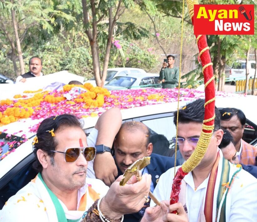 प्रभु श्रीराम के ननिहाल छत्तीसगढ़ में कांग्रेस प्रभारी सचिन पायलट के प्रथम आगमन पर धनुष-बाण भेंट कर विकास उपाध्याय ने किया आत्मीय स्वागत……………….