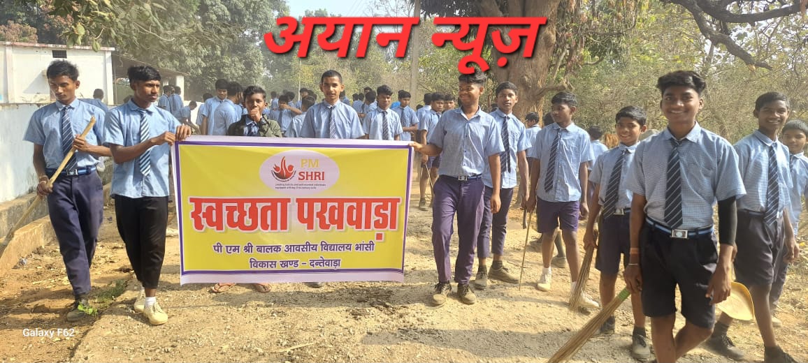 दंतेवाड़ा जिले के ग्राम पंचायत भांसी के बालक आवासीय विद्यालय मे स्वच्छता पखवाड़ा दिवस मनाया गया