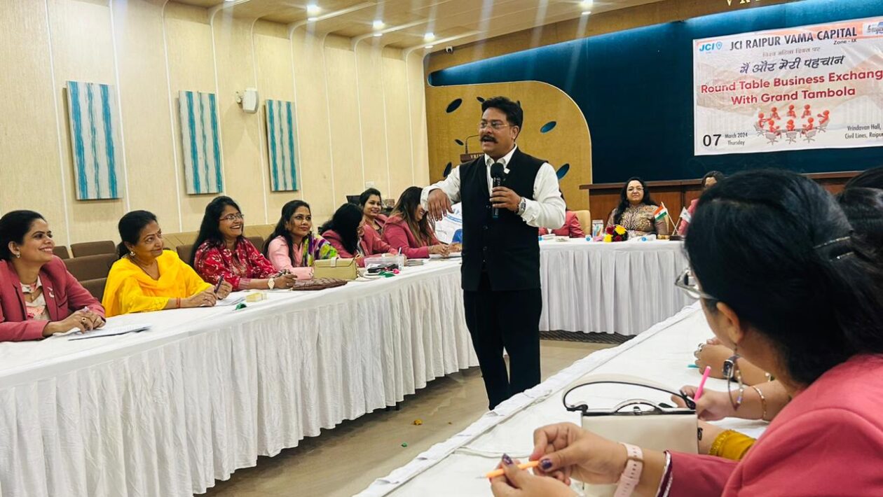 विश्व महिला दिवस पर जेसीआई रायपुरा वामा कैपिटल की तरफ़ से मैं और मेरी पहचान विषय पर राउंड टेबल बिज़नेस एक्सचेंज प्रोग्राम का आयोजन किया गया। इस अवसर पर लगभग 50 से अधिक महिलाओं ने अपने-अपने बिज़नेस के बारे में नॉलेज शेयर किया, ताकि सारी महिलायें एक दूसरे को सपोर्ट कर सके और अपने बिज़नेस को बढ़ा सके।इस अवसर जहां ब्यूटीशियन, बुटीक, सोशल वर्कर, वास्तु कंसलटेंट, मेकअप आर्टिस्ट, ज्योतिष, डिजिटल मार्केटिंग फ़ील्ड की महिलाओं ने अपने काम के बारे में इनफार्मेशन दी, वही डॉक्टर, फ़िज़ियोथेरपिस्ट, सीए, एलआईसी एजेंट ने भी अपने वर्क और प्रोफेशन की जानकारी शेयर की। इस कार्यक्रम का उद्देश्य था कि सभी महिलायें एक दूसरे को और उनके काम को बेहतर तरीक़े से जाने और अपने ही मेम्बर की ग्रोथ में हेल्प बने।वामा की संपादिका दीया मूलचंदानी ने बताया कि इस अवसर पर बेस्ट प्रेजेंटेशन के लिये पूनम अग्रवाल को सम्मानित किया गया। पूरे कार्यक्रम को जेसिस अमितेश पाठक के द्वारा होस्ट किया गया, इस कार्यक्रम की कार्यक्रम निर्देशिका मोना दूबे रहीं। इस दौरान होने बिज़नेस को प्रमोट करने के टिप्स भी दिये। कार्यक्रम के अंत में इस अवसर पर वामा की प्रेसिडेंट शिल्पा काबरा, सेक्रेटरी कल्पना गुप्ता, फाउंडर मेम्बर लीना वाढेर, चैप्टर इंचार्ज आँचल पंजवानी उपस्थित रही। कार्यक्रम के अंत में तंबोला खेलकर कार्यक्रम का भरपूर आनंद लिया