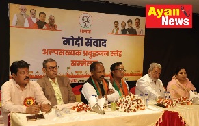 राजधानी में भाजपा का मोदी संवाद व अल्पसंख्यक प्रबुद्ध जन स्नेह सम्मेलन का आयोजन हुआ। जो शहर के नामी निजी होटल के सभागृह में आयोजित था इस कार्यक्रम के विषय में आयोजनकर्ता भाजपा अल्पसंख्यक मोर्चा राष्ट्रीय कार्यसमिति सदस्य श्रीमती नजमा अजीम द्वारा बताया गया कि अल्पसंख्यक मोर्चा के राष्ट्रीय अध्यक्ष जमाल सिद्दीकी द्वारा स्नेह संवाद कार्यक्रम पुरे भारत वर्ष प्रसारित करने के निर्देश है। श्रीमती नजमा अजीम ने बताया यह कार्यक्रम स्नेह संवाद चर्चा परिचर्चा आपसी संवाद,स्नेह सम्मान स्थापित करने के लिए है। इस कार्यक्रम में मुख्य अतिथि बीजेपी छत्तीसगढ़ प्रदेश संगठन महामन्त्री पवन साय जी शामिल हुए श्री साय जी ने कार्यक्रम को संबोधित करते हुए मोदी संवाद में भाजपा प्रत्याशी को आगामी लोकसभा चुनाव के लिए सहयोग करने की अपील की। साथ ही समाज को मुख्यधारा में जोड़ने की बात करते हुए समाज के प्रबुद्धजनों से आपसी संवाद कर सामंजस्य पर विचार रखने कहा इस दौरान इन्होंने रमजान की शुभकामनाएं दे कर उज्जवल भविष्य की कामना की। प्रदेश महामंत्री संजय श्रीवास्तव ने अल्पसंख्यक समाज के प्रबुद्ध वर्ग को संबोधित करते हुए भारत को एक सूत्र में जोड़ने की बात कही मोदी जी की योजनाओं लाभ पर चर्चा की लाभार्थी से संवाद कर देश के प्रधानमंत्री मोदी जी के विचारो को अल्पसंख्यकों में विस्तार होने का आश्वासन दिलाया। प्रदेश प्रवक्ता नलीनेस ठोकने, आईटी सेल संयोजक सुनील पिल्ले मौजूद थें वहीं अल्पसंख्यक समाज के प्रबुद्धजन सम्मान में डॉक्टर सलमान खान रामकृष्ण हॉस्पिटल, कैंसर स्पेशियलिस्ट डॉक्टर यूसुफ मेमन, रिजवान खान,समाज सेवी नोमान अकरम हामिद,मोइन कुरैशी, डाक्टर गगन जीत कौर चावला, श्रीमती कहकशाह दानी,डाक्टर सुरभि चतुर्मोथा ,डाक्टर अर्पण चातुर्मोथा, ऐड मोहम्मद नईम,मोहम्मद अफसार खान, मुमताज मो इरफान, श्रीमती शबाना फरीदी, श्रीमती डॉक्टर कलप्रीत कौर, फाल्गुनी पारीख, आयशा अहमद खान, शायर मिशम हैदरी, हाजी रफीक रंगराज, मुस्ताक भाई मोहम्मद शमीम, मोहम्मद डॉक्टर फिरोज खान, अब्दुल हमीद, सैयद जाकिर अली , इंजीनियर सादिया,मुहम्मद इरफान शायर,वाशिम बाबु बाउंसर,व फरीद भाई काफी संख्या में सामजिक समरसता के जुड़े हुए व्यक्ति और प्रिंट मीडिया के साथी शामिल हुए। कार्यक्रम को सफल बनाने में योगदान रहा याक़ूब गनी,आमिक खान,राहिल रउफि , शशि नेताम,वीना जी,अब्बास जी अल्पसंख्यक मोर्चा से हाफिज जी, मोहम्मद खान जी ,इस्राइल जी,फिरोज़ गांधी जी