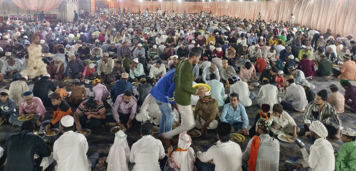 शाही रोजा इफतार मैं उमडे हजारों रोजेदार ,सभी समाज प्रमुख शामिल हुए, रमजान के पवित्र महीने के 27 रोजे पर आज रविवार को रायपुर मुस्लिम हाल बैजनाथ पारा में हुसैनी सेना का शाही रोजा इफ्तार