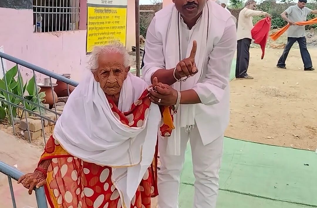 सरपंच शत्रुघ्न चेलक ने बम्बुरडीह निवासी 100 साल के बुजुर्ग महिला को मतदान केंद्र ले जाकर करवाया मतदान