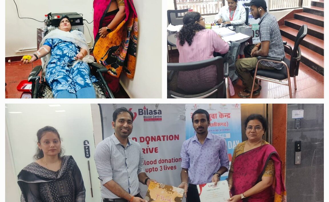 अर्पित तिवारी, जिला युवा अधिकारी, नेहरू युवा केंद्र रायपुर ने बताया की रक्त दान के माध्यम से लोगो को रक्त दान करने के लिए तथा स्वस्थ जीवन यापन करने के लिए प्रेरित करना है। उन्होंने बताया की 01 यूनिट रक्त दान करने से हम 03 ज़िन्दगी बचा सकते हैं। उन्होंने आगे बताया की नियमित रक्तदान करने से व्यक्ति की रोग प्रतिरोधक क्षमता मे इजाफा होत है साथी मधुमय व रक्तचाप जैसी बीमारियों का भी खतरा कम रहता है।