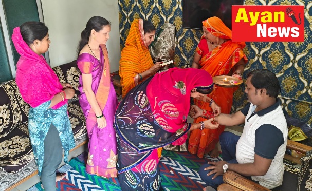 *कांग्रेस नेता व पार्षद प्रत्याशी को पं. सुन्दर लाल शर्मा वार्ड क्र.42 की मितानीनों ने बांधी राखी*