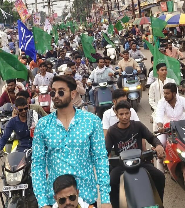 *पैगम्बर ए इस्लाम हजरत मोहम्मद साहब के जन्म दिवस ईद मिलादुन्नबी के अवसर पर आज रायपुर महानगर और हुसैनी सेना की विशाल बाइक रैली निकाली रायपुर महानगर अध्यक्ष सूफी उवैश , जिला प्रभारी अब्दुल रऊफ ने बताया की के संरक्षक नईम रिजवी अशरफी ,राष्ट्रीय अध्यक्ष राहिल रउफी ने औलिया चौक मोती बाग स्थित बंजारी बाबा दरगाह से झंडी दिखाकर रवाना किया बाइक रैली औलिया चौक से बैरन बाजार छोटापारा ,बैजनाथपारा ,नगर घड़ी ए राजा तालाब पंडरी जेल रोड मौदहापारा ,आजाद चौक ,ईदगाह भाटा पुरानी बस्ती चांदनी चौक सिद्धार्थ चौक संतोषी नगर से होता हुआ संजय नगर में समापन हुआ जहां हुसैनी सेना के सैकड़ों नौजवानों ने ईद मिलादुन्नबी की आम नागरिकों को मुबारकबाद दी आज की रैली में राष्ट्रीय अध्यक्ष राहिल रउफी राष्ट्रीय उपाध्यक्ष सैयद अब्दुल कयूम अली सोहेल सेठी शेख अमीन ,डॉक्टर नेहाल खान ,सैय्यद नवेद अशरफ , मो समीर कालू ,जफर इकबाल, साजिद पठान ,फहीम खान,डॉक्टर नेहाल खान, एहतेशाम हुसैन, अब्दुल रऊफ ,मोहम्मद हफीज, रिज़वान अहमद, तौशीफ अहमद भैय्यू, मो तनवीर,मोहम्मद नौशाद, इरफान खान, इशान खान ,निजाम कुरैशी, मो सद्दाम, सद्दाम मौलाना, मो शादाब, बाबा भाई,शेरू भाई,