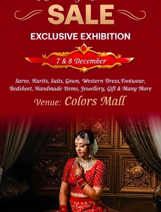नारी फ़ैशन एवम लाइफ स्टाइल लेकर आए हैं नए साल के खास मौके पर एक बार फिर से अपने शानदार कलेक्शन के साथ ।श्रुति जैन द्वारा आयोजित दो दिवसीय 7 एवम 8 दिसंबर को भव्य एक्सिबिशन का आयोजन पचपेड़ी नाका स्थित कलर्स मॉल में किया जा रहा है ।एक्सिबिशन में सजावट के सामान , होम मेड आइटम्स , गिफ्ट हमपर्स, कुर्तियां, साड़ियां, कोलकाता स्पेशल साड़ियां, डीजाईनर कुर्ती, इंडो वेस्टर्न, ज्वेलरी, फुट वियर , कॉस्मेटिक्स, होम मेड फ़ूड आइटम्स, दिए, बंदनवार, भगवान के पोशाक, और भी बहुत कुछ सिर्फ आपके लिए खास , एक से बढ़ कर एक स्टॉल्स, शानदार कलेक्शन , तो एक बार कलर्स मॉल जरूर आएं।साथ ही साथ आपके लिये फ्री मेंहन्दी, खरीदी पर लकी ड्रा के द्वारा सिल्वर कॉइन ।