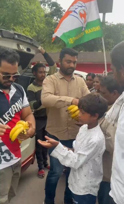 **भारतीय युवा कांग्रेस, रायपुर उत्तर विधानसभा** **स्थापना दिवस के अवसर पर अंबेडकर अस्पताल के पास फल वितरण कार्यक्रम** **रायपुर, 9 अगस्त 2025**