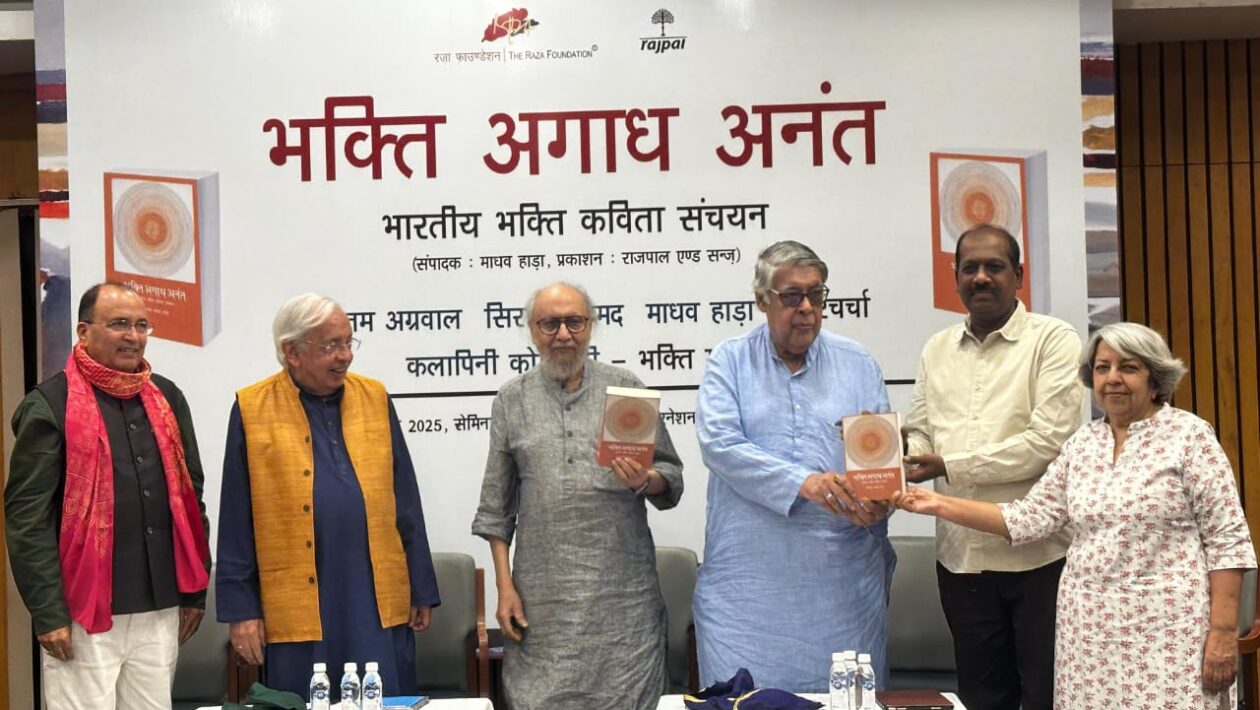 दिल्ली। भक्ति अगाध अनंत हिंदी में अपने ढंग पहला महत्वपूर्ण कार्य है, जिसमें भारतीय भाषाओं के अधिकांश महत्वपूर्ण संत- भक्त सम्मिलित हैं। भारतीय भक्त कवियों के सामने पहले से दिया कोई आदर्श नहीं रहा और उन्होंने नए ढंग से भक्ति काव्य की रचना और पुनर्रचना की। विख्यात आलोचक प्रो पुरुषोत्तम अग्रवाल ने रज़ा न्यास द्वारा आयोजित भक्ति अगाध अनंत के लोकार्पण समारोह में कहा कि परम्परा से प्राप्त अपने साहित्य को निरंतर देखना समझना चाहिए। इससे पहले प्रसिद्ध समाजशास्त्री आशीष नंदी और मंचासीन वक्ताओं ने माधव हाड़ा द्वारा संपादित ग्रन्थ भक्ति अगाध अनंत का लोकार्पण किया। परिचर्चा में कन्नड़ साहित्य के मर्मज्ञ सिराज अहमद ने ग्रन्थ में सम्मिलित कवियों की चर्चा करते हुए कहा कि कन्नड़ के वचनकारों का भक्ति साहित्य बहुत अलग और महत्वपूर्ण है। उन्होंने अक्का महादेवी, बसवन्ना, अल्लम प्रभुदेव की रचनाओं के महत्व पर प्रकाश डालते हुए प्रसन्नता व्यक्त की कि संपूर्ण भारत के भक्ति साहित्य का यह चयन पाठकों को अपनी विरासत से जोड़ेगा।रज़ा न्यास के प्रबंध न्यासी और वरिष्ठ साहित्यकार अशोक वाजपेयी ने कहा कि सदियों से निरंतर और देशव्यापी भक्ति चेतना को समेकित रूप में जानने समझने की जरूरत है, जिसके लिए भक्ति अगाध अनंत जैसे संचयन उपयोगी सिद्ध होंगे। उन्होंने कहा भक्ति की कविता-सत्ता अपने सत्व में, प्रभाव में और व्याप्ति में जनतांत्रिक थी उसने धर्म, अध्यात्म, सामाजिक आचार-विचार, व्यवस्था आदि का जनतंत्रीकरण किया। वह एक साथ सौंदर्य, संघर्ष, आस्था, अध्यात्म, प्रश्नवाचकता की विधा बनी। यह अपने आप में किसी क्रांति से कम नहीं है। इस नई जनतांत्रिकता में व्यक्ति की इयत्ता और गरिमा का सहज स्वीकार भी था प्रायः सभी भक्त कवि अपनी रचनाओं में निस्संकोच अपने नाम का उल्लेख करते हैं।वाजपेयी ने संपादक माधव हाड़ा को निर्धारित समय में संचयन का कार्य पूरा कर सुंदर ढंग से प्रस्तुत करने के लिए मुक्त सराहना की। परिचर्चा में संपादक प्रो माधव हाड़ा ने कहा कि भक्ति कविता परलोक व्यग्र कविता नहीं है अपितु यह जीवन की कविता है। भक्ति कविता का ईश्वर भक्तों का सखा, मित्र और प्रेमी है तथा उनकी पहुँच के भीतर है। हाड़ा ने कहा कि भक्ति कविता की निर्मिति में परंपरा से प्रदत्त स्मृति और संस्कार की भी निर्णायक भूमिका है।आयोजन का एक और आकर्षण शास्त्रीय गायिका कलापिनी कोमकली का गायन भी था। कोमकली में गोरखनाथ का पद कौन सुनता कौन जागे हैं, नानकदेव का अब मैं कौन उपाय करूँ, कबीर का गगन की ओट निसाना है भाई जैसे कुछ पदों के गायन से श्रोताओं को मंत्रमुग्ध कर दिया।आयोजन में प्रसिद्ध रंगकर्मी प्रसन्ना, आलोचक मुरली मनोहर प्रसाद सिंह, रेखा अवस