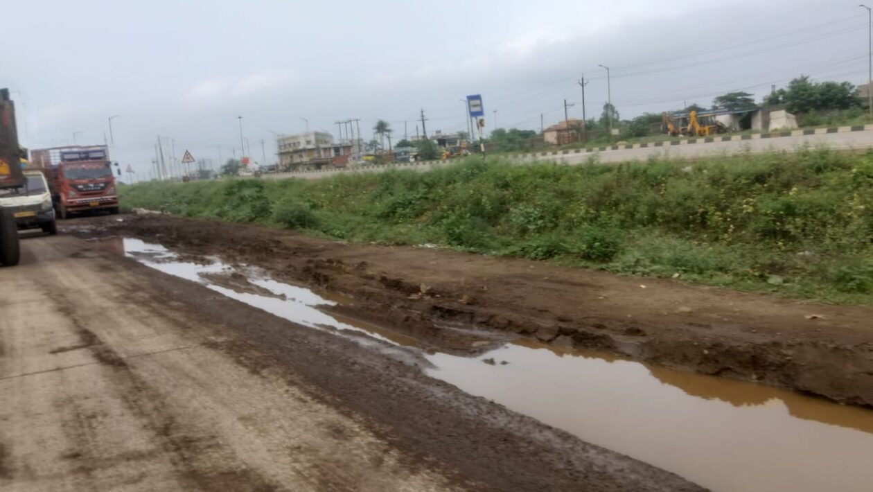 धरसींव के औद्योगिक क्षेत्र सांकरा से सिलतरा तक सिक्स लाइन के दोनों तरफ बनी सर्विस रोड की साइडों में गहरे गहरे गड्ढे