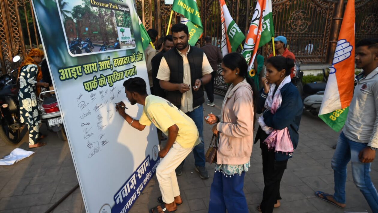 रायपुर, 21 दिसंबर 2025युवा कांग्रेस द्वारा ऑक्सीज़ोन पार्क में CCTV कैमरों की स्थापना के लिए हस्ताक्षर अभियान का आयोजनउत्तर विधानसभा युवा कांग्रेस के अध्यक्ष नवाज़ खान के नेतृत्व में आज 21 दिसंबर को रायपुर के प्रसिद्ध ऑक्सीज़ोन पार्क में एक विशाल हस्ताक्षर अभियान (सिग्नेचर कैंपेन) का आयोजन किया जा रहा है।यह 19 एकड़ में फैला हुआ विशाल ऑक्सीज़ोन पार्क शहरवासियों के लिए एक प्रमुख मनोरंजन और विश्राम स्थल है। पार्क में आने वाले हजारों नागरिकों, विशेषकर महिलाओं, बच्चों और बुजुर्गों की सुरक्षा को ध्यान में रखते हुए युवा कांग्रेस CCTV कैमरों की स्थापना की मांग को लेकर यह अभियान चला रही है।इस अभियान के माध्यम से पार्क में CCTV कैमरों की स्थापना कर सुरक्षा व्यवस्था को मजबूत करने की मांग प्रशासन से की जाएगी। युवा कांग्रेस का मानना है कि शहर के इस महत्वपूर्ण सार्वजनिक स्थल पर CCTV कैमरों की स्थापना से अपराधों पर अंकुश लगेगा और नागरिकों को सुरक्षित माहौल मिलेगा।महत्वपूर्ण घोषणा: यदि एक सप्ताह के अंदर ऑक्सीज़ोन पार्क में CCTV कैमरे स्थापित नहीं किए गए, तो उत्तर विधानसभा युवा कांग्रेस के अध्यक्ष नवाज़ खान पुराने कैमरे लेकर नगर निगम महापौर को भेंट करेंगे।