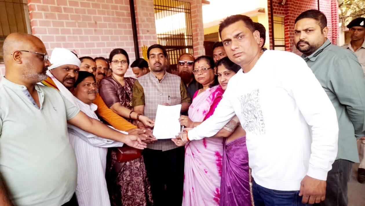 शहर जिला कांग्रेस कमेटी के निर्देशानुसार नेताजी कन्हैया लाल बाजारी ब्लॉक कांग्रेस कमेटी द्वारा स्वामी आत्मानंद स्कूल जनता कालोनी मे सांकेतिक प्रदर्शन कर दिया गया ज्ञापन
