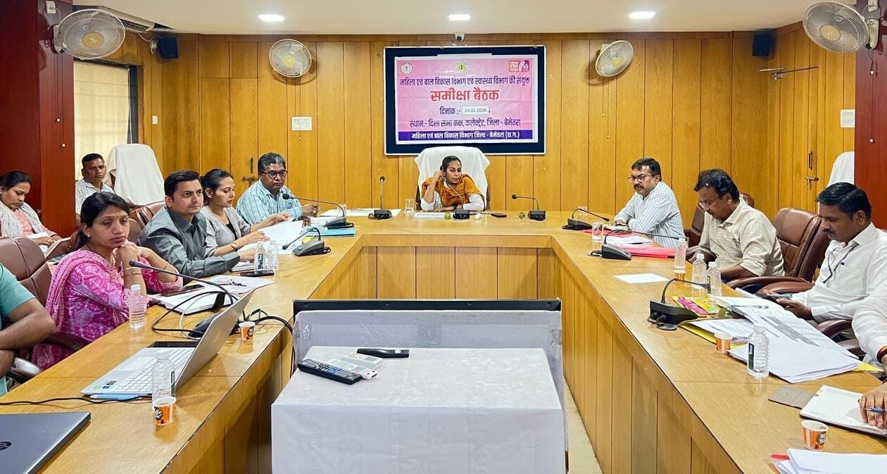 बेमेतरा 24 फरवरी 2026: जिले में स्वास्थ्य सेवाओं के प्रभावी क्रियान्वयन, मूल्यांकन एवं सुधार के उद्देश्य से कलेक्टर सुश्री प्रतिष्ठा ममगाई ने मंगलवार को महिला बाल विकास एवं जिला स्वास्थ्य समिति की संयुक्त बैठक आयोजित की। यह बैठक स्वास्थ्य विभाग एवं महिला एवं बाल विकास विभाग के समन्वय से संपन्न हुई, जिसमें विभिन्न राष्ट्रीय स्वास्थ्य कार्यक्रमों की प्रगति की विस्तृत समीक्षा की गई।