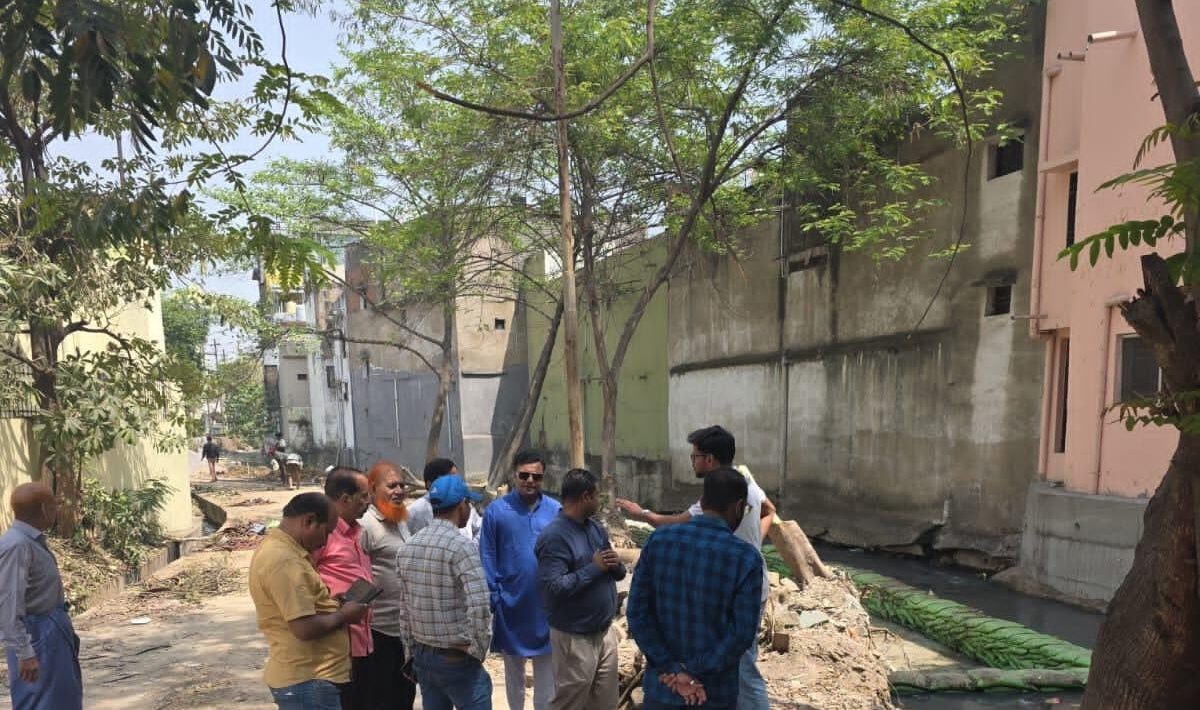 नाला निर्माण देखने पहुंचे पूर्व पार्षद और जोन 3 के अधिकारीगण