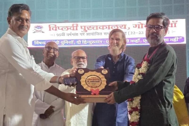 कवि-आलोचक आशीष त्रिपाठी ‘डॉक्टर नामवर सिंह सम्मान’ से विभूषित बेगूसराय। विप्लवी पुस्तकालय, गोदरगावाँ, बेगूसराय (बिहार) की ओर से दिया जाने वाला ‘डॉक्टर नामवर सिंह राष्ट्रीय सम्मान’ पुस्तकालय के 95 वें स्थापना दिवस के अवसर पर आयोजित दो दिवसीय वार्षिकोत्सव में 23 मार्च को हिंदी के सुपरिचित कवि–आलोचक आशीष त्रिपाठी को प्रदान किया गया। आशीष त्रिपाठी काशी हिन्दू विश्वविद्यालय के हिंदी विभाग में प्रोफेसर और प्रतिबद्ध जनपक्षधर आलोचक हैं। इससे पूर्व उन्हें आलोचना के लिए ‘स्पंदन सम्मान’ तथा कविता के लिए ‘लक्ष्मण प्रसाद मंडलोई सम्मान’ भी नवाजा जा चुका है। उनकी आलोचना की केंद्रीय चिंता भारतीय समाज और भारतीय लोकतंत्र है। वे हिंदी के जनबुद्घिजीवी परम्परा को आगे बढ़ाने वाले आलोचक हैं। देश के अलग-अलग हिस्सों में विभिन्न अकादमिक-साहित्यिक आयोजनों के दौरान अपने भाषणों, वक्तव्यों में उन्होंने साहित्य के जनपक्षधर, जनोन्मुखी पक्षकार की तरह विषय और बहसों को आगे बढ़ाया है। आशीष त्रिपाठी की ‘एक रंग ठहरा हुआ’, ‘शांति पर्व’ (कविता संग्रह), ‘समकालीन रंगमंच और रंगभाषा’ तथा ‘आलोचना के क्षितिज’ श्रृंखला में आलोचनात्मक आलेखों की एक पुस्तक प्रकाशित है। इसके अतिरिक्त विभिन्न प्रतिष्ठित पत्र पत्रिकाओं ने आशीष त्रिपाठी के आलोचनात्मक काम को प्रकाशित किया है। आशीष जी के संपादन में प्रो.नामवर सिंह की अनेक पुस्तकें यथा – जमाने से दो-दो हाथ, प्रेमचंद और भारतीय समाज, हिंदी का गद्य पर्व, कविता की जमीन और जमीन की कविता, आलोचना और विचारधारा, सम्मुख, साथ साथ, साहित्य की पहचान, आलोचना और संवाद, पूर्वरंग, जीवन क्या जिया, किताबनामा और तुम्हारा नामवर इत्यादि प्रकाशित। हैं। इसके साथ ही उन्होंने नामवर जी के साथ आचार्य रामचंद्र शुक्ल रचनावली का संपादन किया है।चंद्रकांत देवताले के ‘मेरे साक्षात्कार’ और काशीनाथ सिंह के दो कहानी संग्रह ‘खरोंच’ और ‘पायल पुरोहित और अन्य कहानियां’, ‘आषाढ़ का एक दिन: कृति से साक्षात्कार’, स्वयं प्रकाश की ‘प्रतिनिधि कहानियां’ का संपादन भी प्रो. त्रिपाठी ने किया है। समारोह के आरम्भ में प्रो. आशीष त्रिपाठी को प्रशस्तिपत्र, अंगवस्त्र, स्मृति चिह्न और नकद धनराशि भेट कर सम्मानित किया गया। त्रिपाठी जी ने सम्मान राशि को आग्रहपूर्वक पुस्तकालय को समर्पित कर दिया।इस अवसर पर अपने वक्तव्य में आशीष त्रिपाठी ने आयोजकों को धन्यवाद देते हुए कहा कि उनके चेतना निर्माण में प्रगतिशील लेखक संघ की महत्वपूर्ण भूमिका रही है।उन्होंने कहा कि मुझे किसी विश्वविद्यालय ने नहीं बनाया बल्कि प्रलेस द्वारा आयोजित कार्यशालाओं, गोष्ठियों और इस तरह के आयोजनों के भीतर भागीदारी ने मेरे लेखकीय व्यक्तित