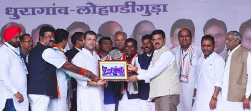 रायपुर सांसद राहुल गांधी आज छत्तीसगढ़ राज्य के बस्तर जिले के ग्राम धुरागांव में आयोजित आदिवासी कृृषक भू-अधिकार सम्मेलन में शामिल हुए। इस अवसर पर राहुल गांधी को उस समय की अविस्मरणीय फोटोग्राफ की प्रति प्रदाय की गई, जब वर्ष-1972 में तत्कालीन प्रधानमंत्री इंदिरा गांधी ने लोहाण्डीगुड़ा पहुंचकर आदिवासियों को जमीन का पट्टा प्रदाय किया था। इस कार्यक्रम में मुख्यमंत्री भूपेश बघेल, विधानसभा अध्यक्ष डॉ. चरण दास महंत, सांसद पी.एल. पुनिया सहित मंत्रिमंडल के सदस्यगण सहित जनप्रतिनिधि और बड़ी संख्या में आदिवासी एवं किसान शामिल हुए।